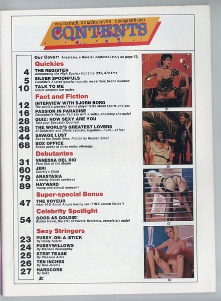 High Society 1981 Vanessa Del Rio, Connie Mack 100pgs Vintage Porn Magazine HSP Pub. M37753