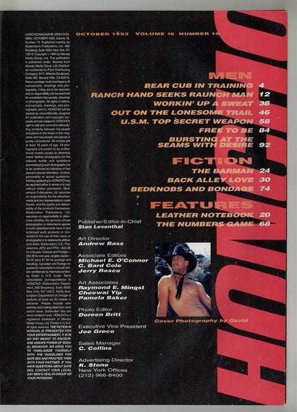 Honcho 1993 Roberto Roma, David Lloyd, Cityboy 100pgs Cowboys Vintage Gay Magazine M37513