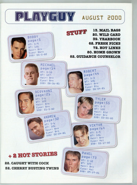 Playguy 2000 Deovahni Salazar, Chuck Mann, Robert Ari 100pgs Gay Magazine M38270